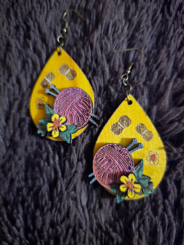 • Pendientes de madera bordados a mano Goldenwood Elegance