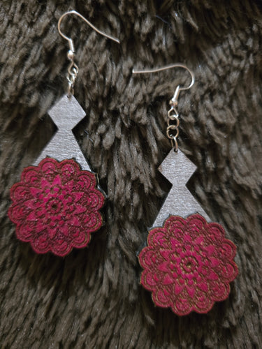 • Pendientes mágicos de madera con diseño de mandala ruborizado