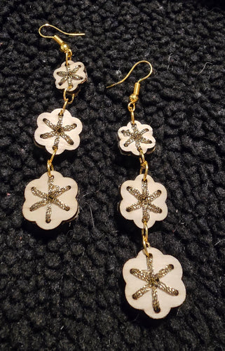 • Cielo Helado Pendientes de madera con copos de nieve pintados a mano.